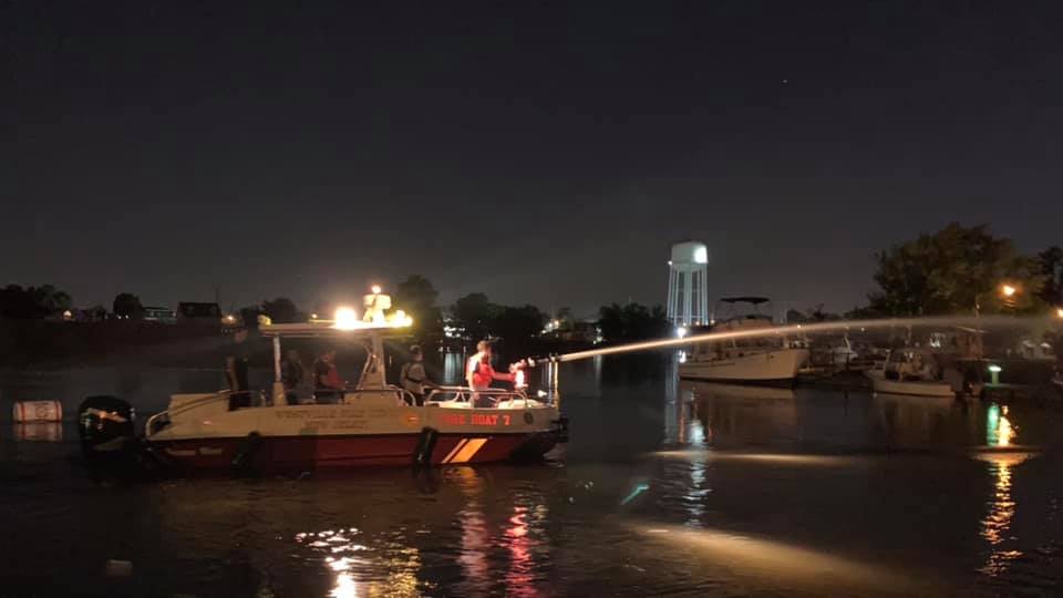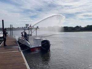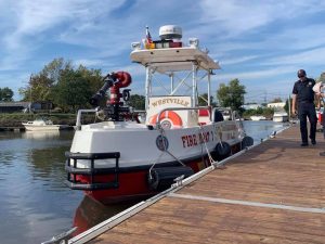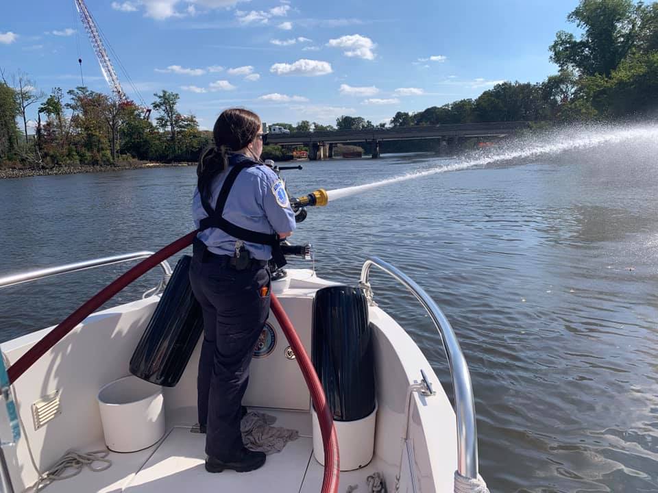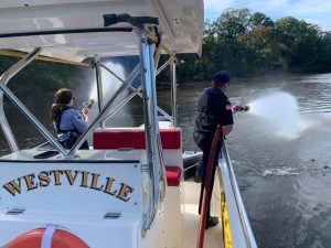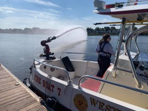 Today the Career and Volunteer Staff spent the day on the water in and around Westville training on our Fireboat. Fireboat 7 is a 2011 24’ Harbor Guard Vessel that pumps 1000 Gallon Per Minute of water with Foam and first aid equipment. The training today covered response area on the Delaware River and the Big Timber Creek through Westville into Camden County. Operations of the vessel, Navigation, master streams and hose lines and appliances. Attached are photos throughout the day.
