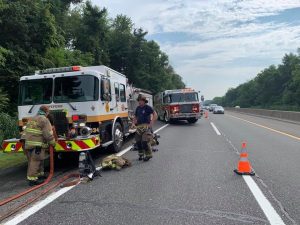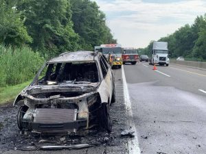 Today companies operated on a vehicle fire southbound on the New Jersey Turnpike. A passenger vehicle well involved, Engine 934 operated a 1 3/4” handling. Rescue 738 in the blocking position no injuries on scene.